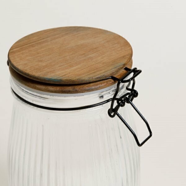 Frasco Vidrio Rayas Y tapa Acacia 1500 Ml (0127007)